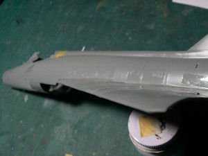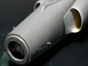 ![]() All of panel lines were re-scribed. Surfacer was thinly sprayed for confirmation of engraved lines. |