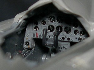 ![]() The cockpit is from the box. Tamiya Gloss Black was painted over Mr.Medium Sea Gray on each instruments. Then I scruched gentlly. Details appeared. |
