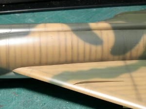 Weathering I intended to express characteristic rough surface of F-102 by painting. Well, I know this is only "metaphysical" modeling. |