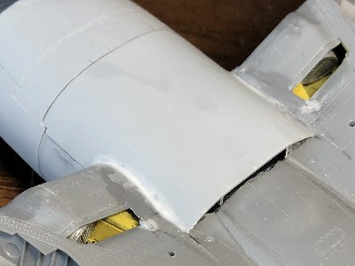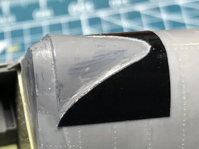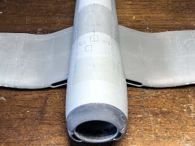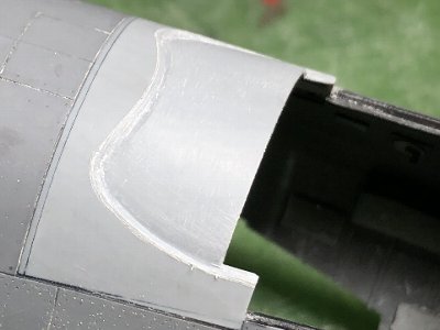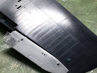 ![]() その他のスジボリ、胴体上面のエアアウトレットなど工作。 |