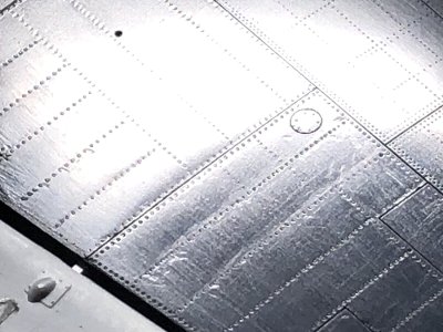 フレームの増加により、リベットラインだけでなく、パネルラインも位置がズレる。また、フレーム以外にも、前後方向の細かいリブの本数・配置も異なる。 模型の方は、本数増加だけなら無視してもいいが、上下の食い違いは無視できない特徴。キットのリベット穴とスジボリを埋めて、新たに彫りなおす。←現在、このあたりを匍匐前進中。猛暑で疲労が溜まっていて、しんどい作業は進まんのじゃ。