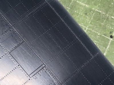 ![]() 主桁より前方は、キットの点リベットをそのまま残す。一部消えかかったところはケガキ針で再生。 |