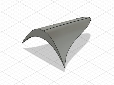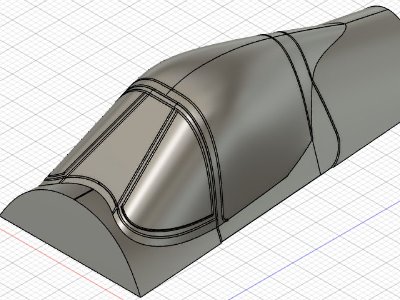 胴体側の木型も3DPで作っており、データ的には風防と胴体の幅は同じになるハズ。しかし現実には裾がやや広い。その原因は、ヒートプレスで曲げたパーツには「戻り」が生じるため。例えば、針金をペンチで90°に折り曲げるとき、曲げる角度が90°なら出来上がりは90°までいかない。これが戻り。木型設計時にこの戻りのことを忘れてたのだ。 風防だけなら、裾を狭めて接着してやれば済むが、そうするとキャノピの幅と違ってしまう。そこで、戻りの分だけ裾幅を狭めた木型を作り、再度ヒートプレスする。設計変更は、Fusion360でスケッチの寸法を変更するだけなので、それほど大変ではない。 |
