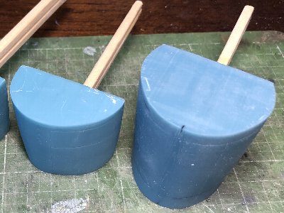 ![]() 機首の木型は、レジン節約のため補強入りの中空。キャノピは小さいのでムク。 |