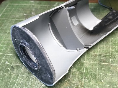 ![]() 内部には、形状保持とエンジン基部を兼ねたバルクヘッドを入れる。実機には存在しないけどな。 |