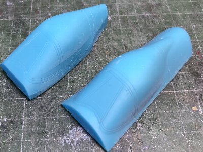 ![]() コクピット前方の胴体上部も同様に3Dの木型を絞って工作。キットでは風防と一体のクリアパーツになっている部分だ。 |