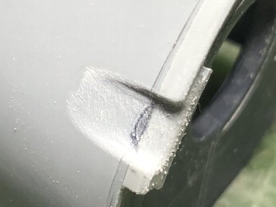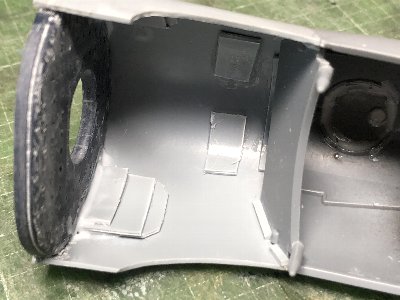 ![]() 裏側にはプラバンで裏打ち。排気管の凹みの裏打ちもやっておく。 |