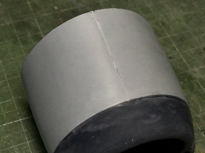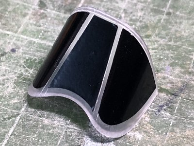 ![]() その形に合わせて、シートをカットして貼る。接合線より0.7mmほどアウトセットする。 |