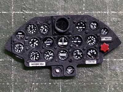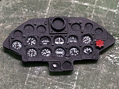 ![]() 計器盤にキットデカールを貼る。-5Nは-1Dよりメーターの数が多いので、デカールが足りない。あとでパーツ請求しよう。 |