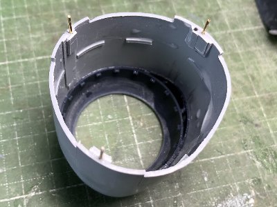 ![]() 排気管はサイズ違いでいくつか出力。パーツに合わせて凹みを深く削る。 |