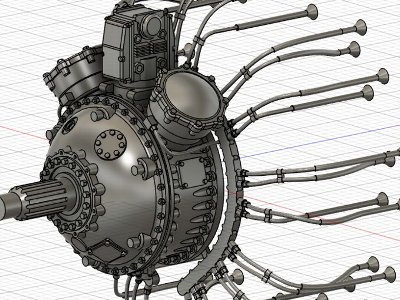 ディストリビュータやマグネトー(ギアケース上部中央にあるやつ)の寸法やディテールは、よい写真がなくてやや甘い。ま、プロペラの陰でよく見えないし。プラグコードも一応設計してみる。上手く出力できるかどうか。 巷には無料or安価で利用できる3Dデータがある。ただstl形式じゃあねえ。ちょこっと修正するのも大変だ。それならゼロから作った方が気分もスッキリ。寸法やディテールは参考にさせてもらう。でも同じではない。