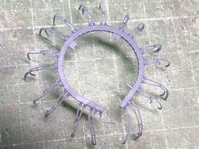 ![]() 防眩フィンは0.5mm真鍮線で固定する。穴はデータで開けてある。 |