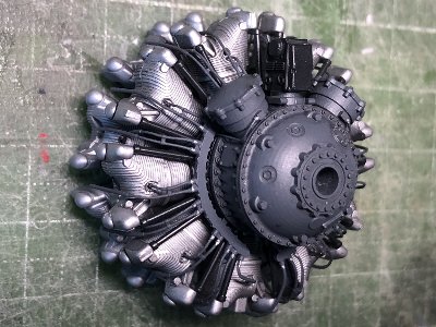 ![]() 塗装して仮組み。いいんでないかい? 苦労の甲斐ありだ。シリンダーとカムロッドはキット。ギアケースはEDSGのビン生。 |