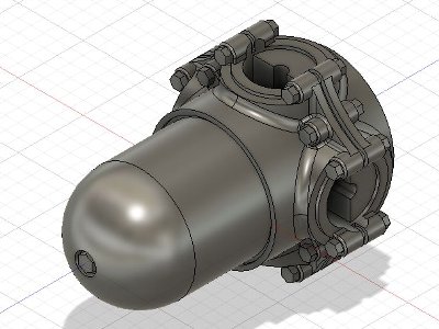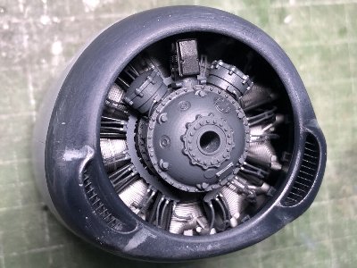![]() エンジンのシリンダー部分は、キットパーツがそのまま使える。バルクヘッドは見えない。ギヤカバーは3DPにするが未着手。 |