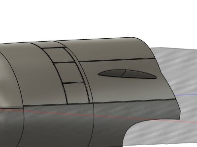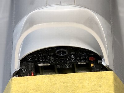 ![]() キャノピ後方のフェアリングは、3Dプリントしたものをそのまま胴体に接着する算段。 |