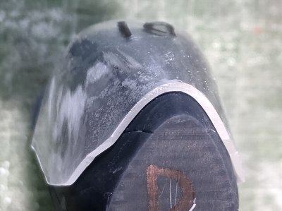 ![]() 上右画像の拡大。ちょっとキズが残ってるなあ。あとでもう一回ペーパーかけるか。 |