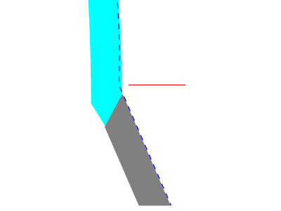 ![]() 裾の接着部の断面概念図。水色は絞ったプラバンで、灰色がキットから切り取った裾。 |