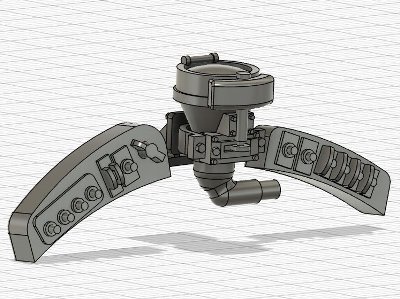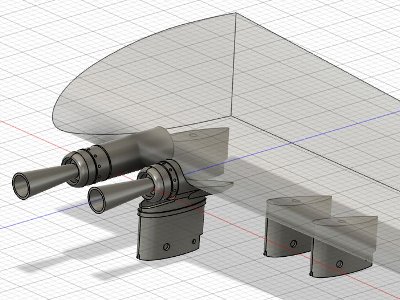 ![]() 防眩フィンも3DP。ロフトで大きめに作って、3D胴体パーツで切り取る。これでモデルの胴体に密着するはず。 |