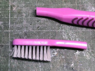 ![]() もともとの毛の長さは均一。ここまで斜めになるとは、一体どれだけコスったのか。 |