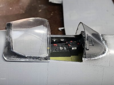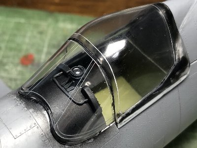 ![]() 風防を溶剤系で接着。キャノピは仮組み。 |