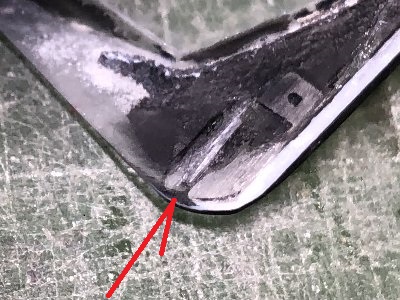 ![]() 後端はちょい厚い。ここは表側から削って0.5mm程度にする。 |