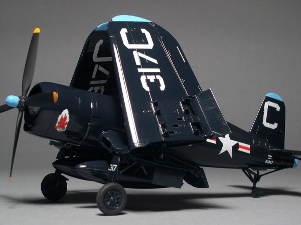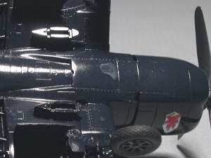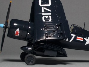 アンテナ線の取り付け位置も−1とは異なる。後期になると胴体下面に逆T型アンテナを装着している。主翼付け根のインテイクは−5と同様にベーンが3枚。−7やAU−1ではまた異なる形なので注意が必要。外側フラップは金属外皮。これは−1Dも同様。車輪カバーや脚柱の塗色は、シーブルーが多いが、シルバーの機体もある。
