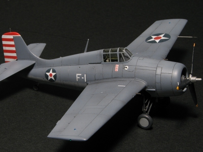 ワイルドキャットの胴体側面には、防火壁のところに微少な段差があり、後ろから見ると細い三日月型に隙間が空いている(真横からは見えない)。現存機のクローズアップ画像などでよく分かる。ハセガワのキットでは再現されてない。私の作品も同様。 スライドキャノピの後下隅の窓は、角が丸くなって見える。これは、外側は普通に四角いガラスなのだが、内側に丸い枠がついているため。理由は不明。ハセでは丸くスジボリされているが、ここは四角く塗って内側から丸い部分を塗るのが正解。私のFM2ではオープンで胴体後部に重なるから目立たないだろうと無視。 凸型スピナにもバリエーションあり。先端が丸まってるのと切り落としたのと。サッチの-3は前者。