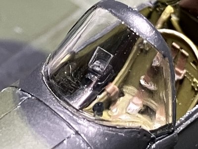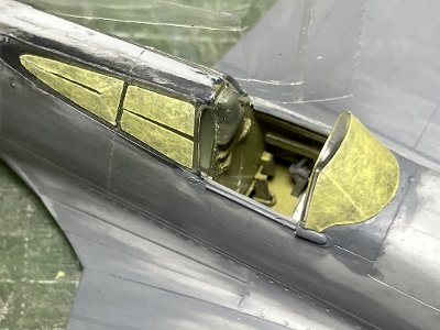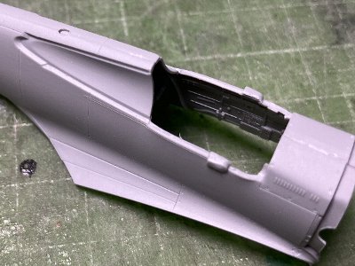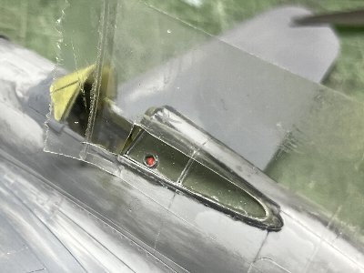 風防前方のスリットはモールドされており、スリットの無い機体にする場合は削り落とす。この割り切りは非常に適切だと思う。国産キットだと別パーツで差し替え式にするんだろうけど、合わせ目の段差隙間を整形するのが手間だったりして、この方式の方がかえって製作が楽。
