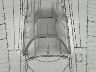 ![]() 図面に重ねる。風防の幅は実機どおりである。 |