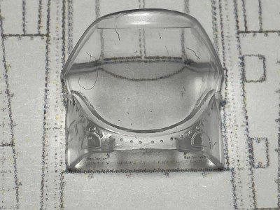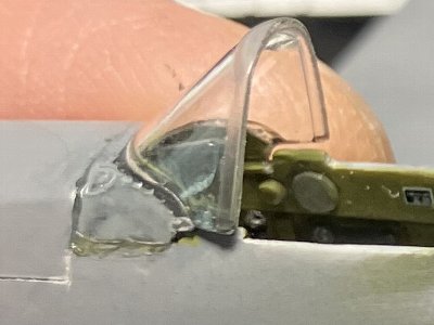 ![]() 可動キャノピはやや大きめ。左舷側で図面に合わせると右舷は1mmほどはみだす。 |