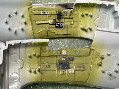 ![]() シートを塗装してウェザマスでウォッシュ。ベルトの色は推測。 |