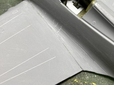 ![]() 削ったところ。あとで細切りデカールか何かで再生する予定。 |