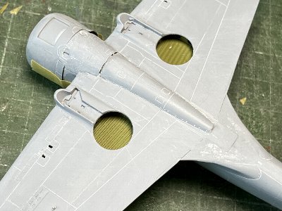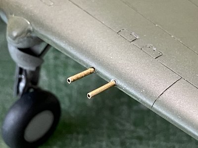 ![]() 機銃スリーブを0.6mm真鍮パイプで再現。実機はさておき模型的表現で。 |