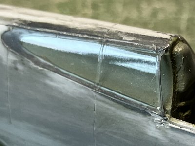 ![]() 角度を変えて。フィレットの部分は膨らんでいないので、削って修正は難しくない。胴体機銃のスリットや後方窓の分割に着目。 |