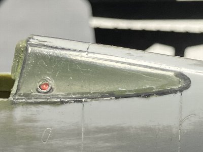 ![]() 翼端はこの位置。翼端灯はクリアランナーで。 |