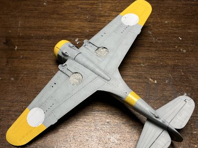 当初は4挺または6挺の7.5 mm機関銃であったが、ソ連軍には威力不足で、1942年から胴体の機関銃を1挺または2挺のブローニングM2 12.7 mmに交換し、各翼に2挺または4挺のブローニング7.7 mmを装備した。機体により、ソ連製12.7 mmベレジンUBまたはフィンランド製12.7mm LKk/42も使用された。 模型的には、おそらく機銃の換装による外面の変化はないと思われる。照準器は、ドイツ製のRevi 3DまたはC/12Dが装備された。ここは仏軍とは異なるだろうね。 胴体機銃のスリットは、写真を見ると「あり」と「なし」と両方。スピナは、砲弾型が多数。ただし凸型もあり。アンテナ柱は短い。ピトー管はクランク。外翼の小爆弾ラックは残されている。脚カバーは、車輪部分が外されている(雪が詰まるのかな?)。以上、個々の機体は写真で確認するが吉。 迷彩塗装は、上面緑単色のものと、黒と緑の2色雲形迷彩の2種類がある。前者は、ドイツで塗装されたとのことで、上面RLM71ダークグリーン、下面RLM65ライトブルーとする資料もある。じゃあ黄色はRLM04かな? 今回は後者の塗装の予定。その解説は塗装の項で。 ※ https://www.ww2incolor.com/gallery/finnish-forces/36360/finnish-curtiss-p-36-hawk