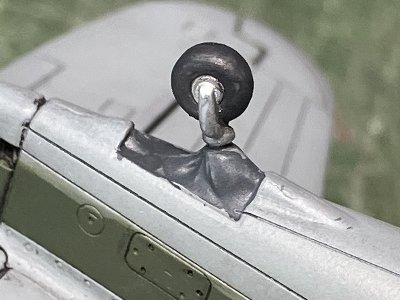 ![]() 尾輪もキットパーツ。取り付け部の布の色は不明。そういうときはグレイで塗っておく。 |