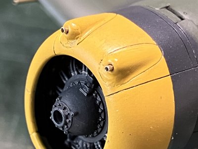 ![]() エンジンを胴体に接着。カウルも胴体に接着。エンジンとカウルは接着してない。 |