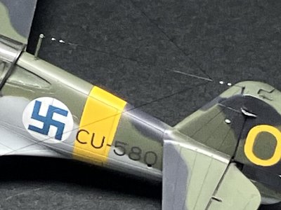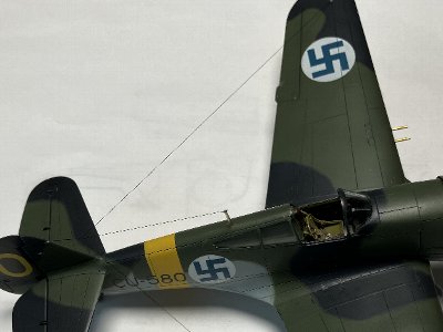 出来た!と思って写真を見返して、取り付け位置の間違いに気付く。H-81と同じように尾翼前縁の小片から張られてると思い込んでたけど、フィン空機は尾翼上端に柱を立て、そこから張られるのだな。いやあ、あれだけ写真を見ていて、何で気付かなかったんだろう。 |