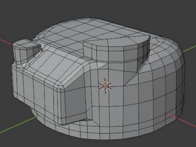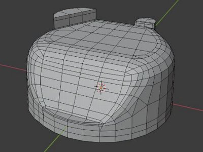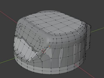 ![]() Blenderで、下面、後面、上面を拡大しておく。辺のクリース値は全て0。形状の微修正は、この状態でメッシュをいじる。 |