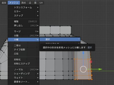 編集後、オブジェクトモードで分離前のファイル、分離後のファイルの順に選択し、ヘッダーの「オブジェクト」→「統合」とすると、1つのオブジェクトになる。ただし、分割線上の点はそれぞれ別個であり、その間は面や辺でつながっていない。 |