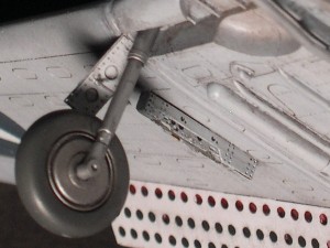 脚下端は、はんだで埋まったところにピンバイスで穴開け。主翼パイロンもエッチング。