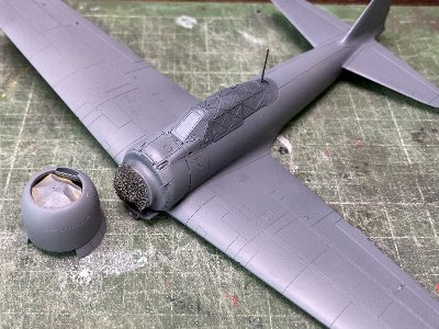 ちなみに、風防は胴体に接着済み。キャノピはまだ接着せず、このまま仮置きで塗装し、その後に、内部の汚れを落としてから接着する予定。で、ここでふと我に返る。オレ、何のためにマシン買い替えたんだろう???