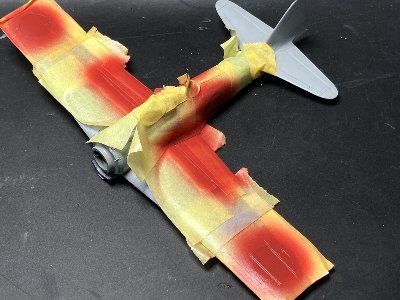 ![]() マスクして赤を吹いたところ。 |