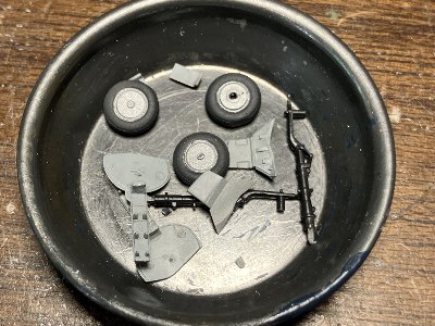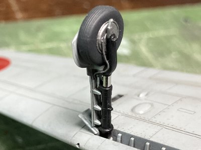 ![]() 主脚接着。オレオにはミラーフィニッシュ。ブレーキパイプは0.2mm鉛線。 |