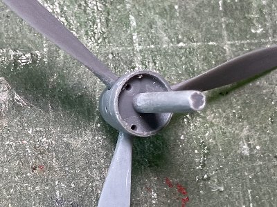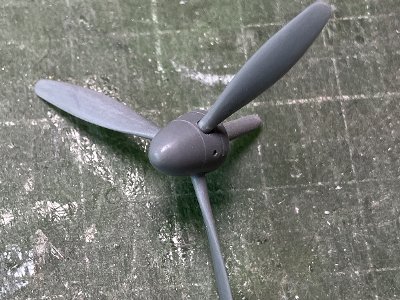 ![]() プロペラも塗装、インレタ、デカールを貼って、気分は完成。シンプルなマーキングもまた良きかな。 |