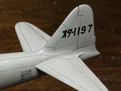 ![]() 機番と銘板がインレタ。書体、配置は実機写真から。9と7の間の広さも実機どおり。 |