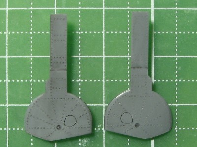 ![]() After riveting, the backside was shaved with a hobby chisel. The original kit is on the right. |