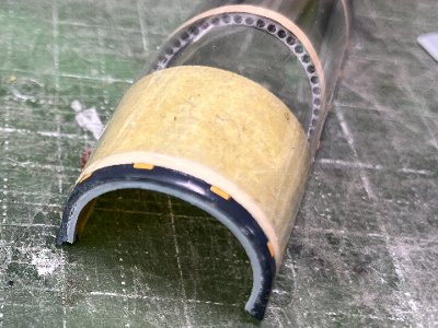 ![]() これで何とか納まったんだけど、内部に曇りが出来てしまって、特定の角度からだと白い部分が見えてしまう(左舷の後半部分)。 |