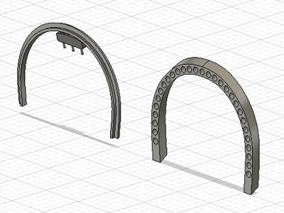 ![]() こんな具合に金属棒を組む。中央のは前方に突出させ、機体の穴に差し込む。これで強度も十分。 |